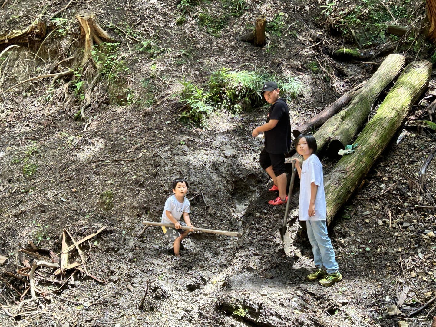 初めて参加の子どもたちも自然にとけこみ大躍動!大人の作業を見て真似て自分たちのできることをやってみる。この体験があるからこそ日常へいかす何かを見つけてほしい。猛暑の中、日差しを遮り時折、吹く風に感謝!