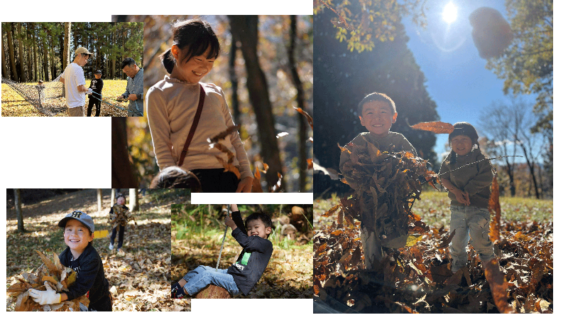 虫探し、壁に絵を描く、自然遊び、森の整備、球技、ゆっくり休む…。